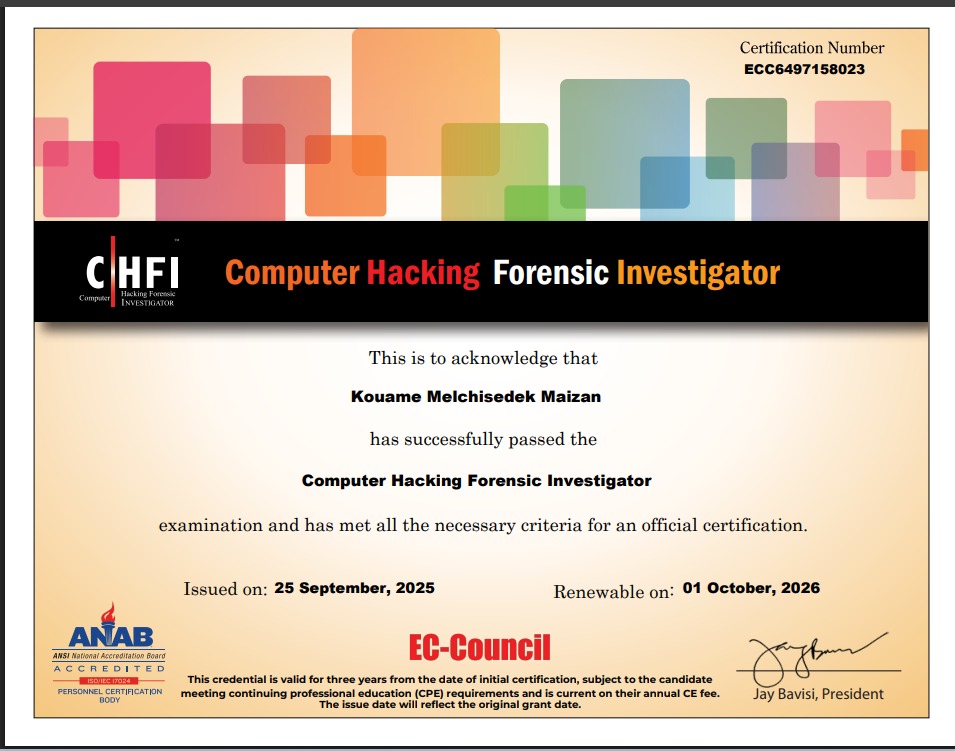 FORMATION INTERNATIONALE CHFI (Forensic, ENQUETE, INVESTIGATION NUMERIQUE)